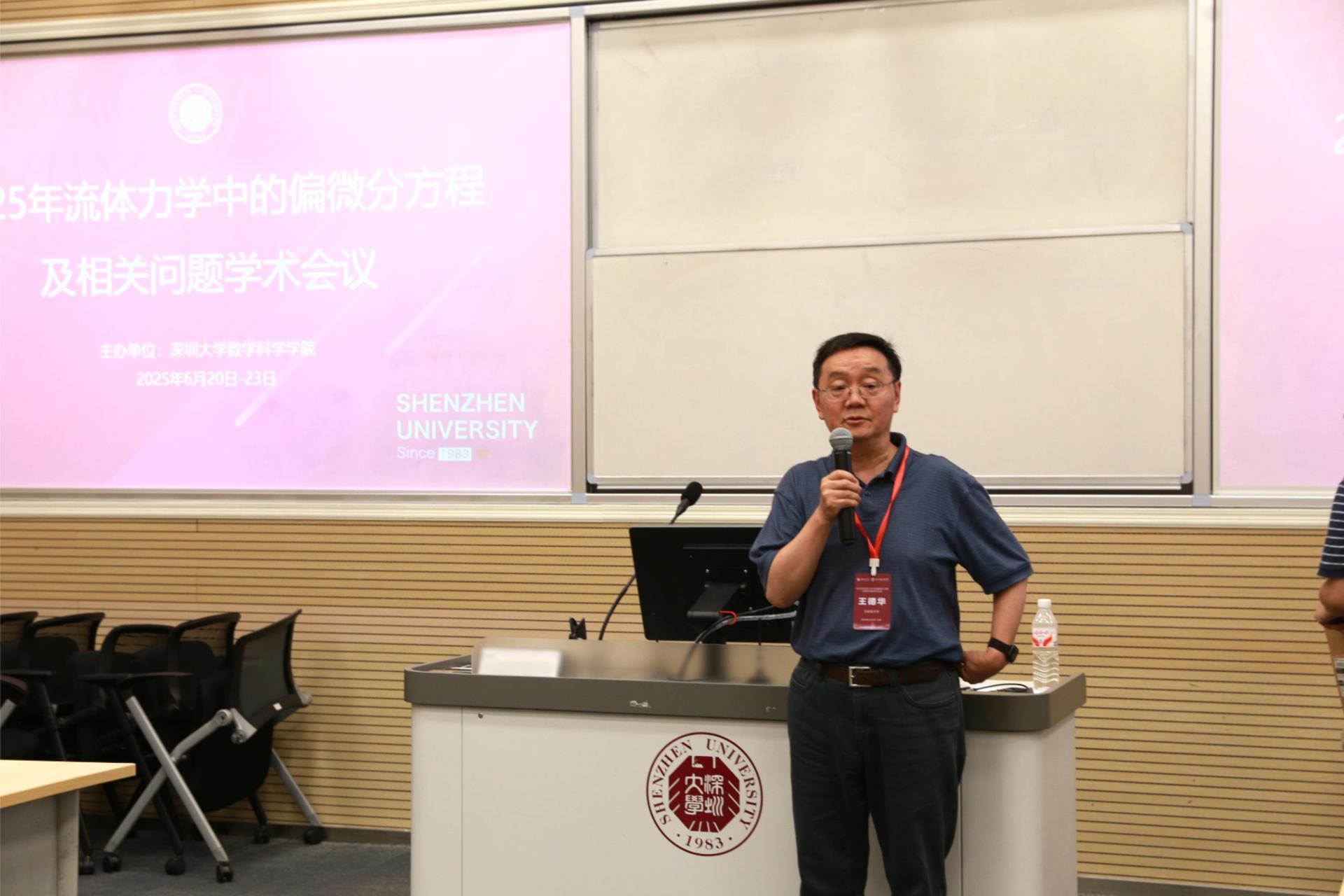 Professor Dehua Wang, a tenured professor in the Department of Mathematics at the University of Pittsburgh (USA) and an internationally renowned mathematician, delivered the opening remarks. Professor Wang expressed his gratitude to the SZU School of Mathematical Sciences for their meticulous arrangements and warmly thanked the experts and scholars who traveled from across the nation to participate. He highlighted that this conference provided a significant platform for scholars specializing in partial differential equations (PDEs) in fluid mechanics to showcase their work, share insights, and foster collaboration, thereby strengthening academic ties within the field.