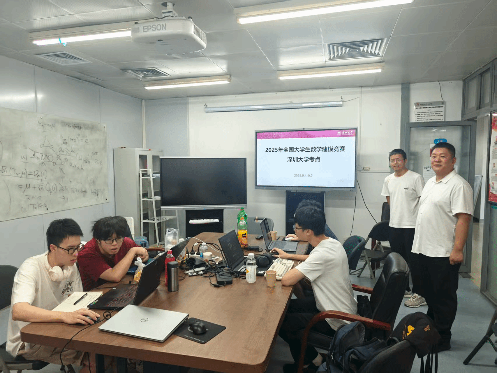 The School of Mathematical Sciences at Shenzhen University places great emphasis on the organization and training for the National College Student Mathematical Contest in Modeling. The school's teaching and research team for discipline competitions initiated the recruitment and selection of instructors for the 2025 MCM guidance team across the university in November 2024, forming a team of 23 instructors with strong mathematical backgrounds and computer skills. At the end of March 2025, promotional activities for the contest were carried out, and student registration was organized. From April to June, 13 teachers specializing in mathematical modeling from Shenzhen University, Beijing Institute of Technology, and Shenzhen MSU-BIT University conducted joint training for the registered students. In mid-May, students were organized to participate in the Shenzhen University Mathematical Contest in Modeling and the "Shenzhen Cup" Mathematical Modeling Challenge. From July to the end of August, respective instructors provided pre-competition guidance and targeted training for their teams. In early September, to address the issue of having many participating teams but no unified competition venue, the school made all available meeting rooms and laboratories available for student use and also applied for seminar rooms on the 8th floor of the Zhili Building for the competition. After the contest began, Vice Dean Han Yu visited multiple competition sites to understand the students' participation status and any issues encountered, actively coordinating solutions with the guidance team. In early October, the school organized some teams recommended for the national contest to go to Guangzhou to participate in the on-site defense session.
