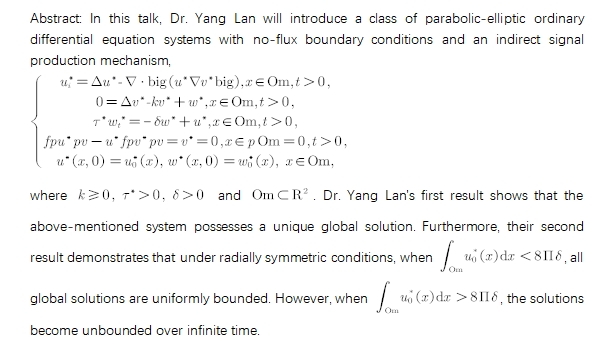 Biography: Yang Lan received her Ph.D. from the University of Electronic Science and Technology of China. Her research focuses on partial differential equations and ordinary differential equations. She has published multiple papers in domestic and international mathematical journals, including Nonlinear Anal., Journal of Mathematical Analysis and Applications,Mathematical Methods in the Applied Sciences.