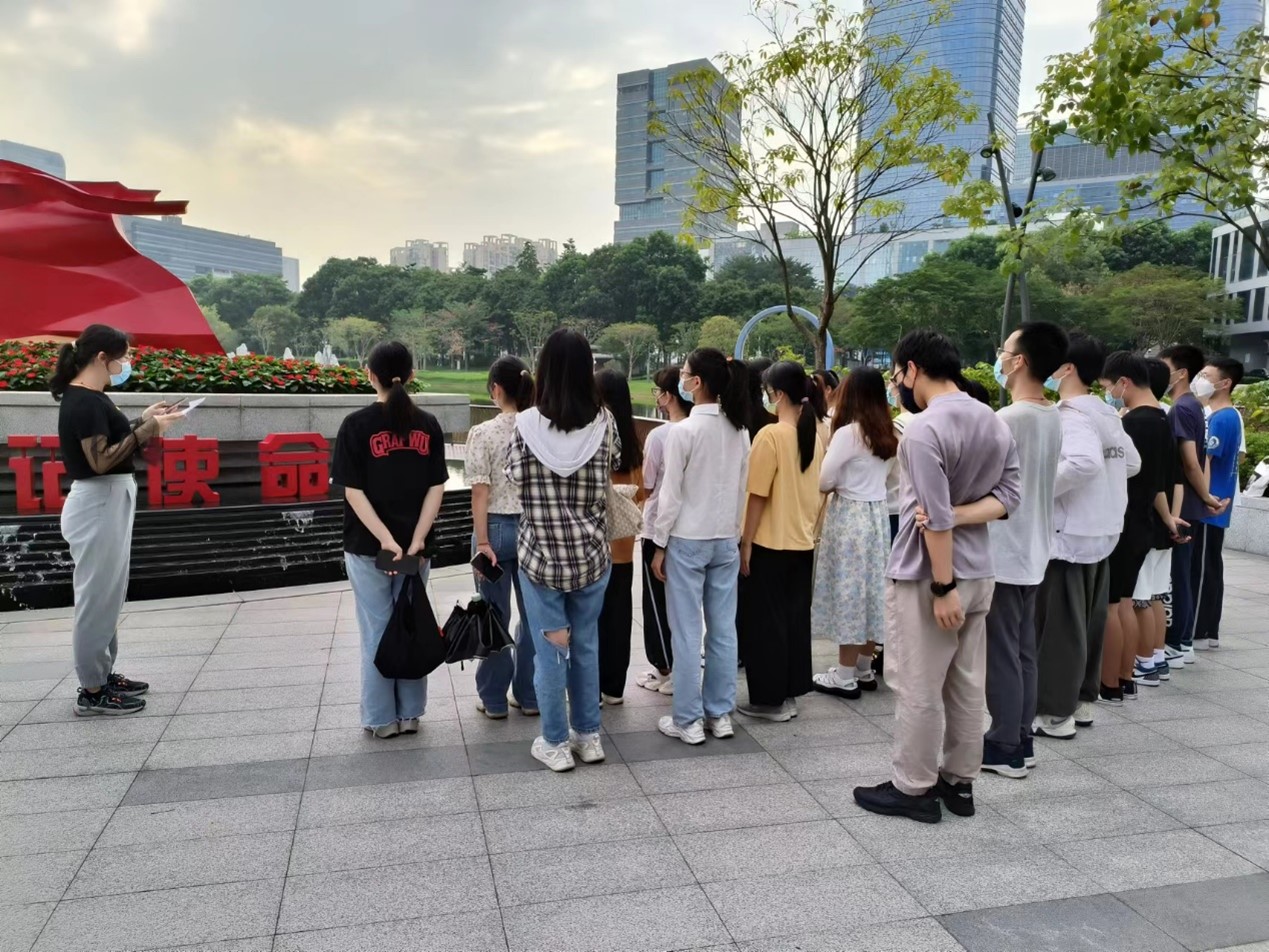 数学与统计学院本科生第一党支部在南山党建公园举行新党员入党宣誓仪式。支部书记钟晓姗老师出席。
