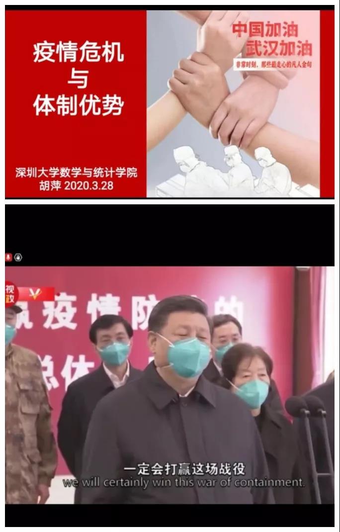 胡萍书记首先主讲“疫情危机与制度优势”专题党课,分别从“危机应对的全局把控”、“果断决策的政治勇气”、“难以复制的救治良方”、”民族精神的众志成城”、“全球抗疫的中国智慧”等方面展开视野与剖析。2020这次新冠肺炎疫情,传播速度之快、感染范围之广、防控难度之大,在世界公共卫生史上实属罕见。面对如此重大的突发公共卫生事件,一个国家采取什么样的应对策略,如何高效整合资源、如何灵活协调行动、如何迅速减少影响,是对国家治理水平与应急能力的极限检验。危机关头有目共睹,中国政府应对有力,在国家主席习近平亲自指挥亲自部署下,全民动员、联防联控,坚定信心、同舟共济,科学防治、精准施策,迅速采取的最全面、最严格、最彻底的防控举措,及时构建疾病传播防线,有效改变疫情发展轨迹,“新冠”阻击战取得明显成效。胡书记还通过一系列短视频,与同学们一起回顾两个月来惊心动魄的抗疫进程。恐慌、泪目、压痕,寂静、拐点、解封。从年三十的白衣勇士驰援武汉,体现了令百姓感叹不已的中国保障;从火神山的八方合力十日建成,展示了令西方惊叹不已的中国速度;从柱状图的确诊缩零疫情趋稳,彰显了令世卫赞叹不已的中国方案。目前国际社会普遍认为,中国采取的坚决有力的防控措施,处处展现的出色的领导能力、应对能力、组织动员能力、贯彻执行能力,为世界防疫树立了典范。胡书记强调,在新冠疫情面前,充分见证了中国政府的坚定意志,见证了中国人民的团结力量,见证了中国制度的强大优势。胡书记提醒同学们,年轻人在和平环境中顺利成长,难得群体直面危机状况,而经历恐惧,才更加坚强;经历生死,才更加勇敢;经历曲折,才更加奋斗。同学们要“感谢”寒假宅家之特别经历,将有助大家深刻感悟与身心历练。当前是“外防输入、内防反弹”阶段,仍然要警惕不轻视。疫情阻击战同时须兼顾舆论战心理战。最后,引用习近平总书记致信九零后援鄂医疗队的嘱咐,希望青马同学们不惧风雨、砥砺意志、勇挑重担、拼搏奋战,让青春在党和国家最需要的地方绽放绚丽光彩。接着学院团委书记肖晓君老师向青马学员们分析目前全球疫情情况。面对全球传染性疾病,所拼的是综合国力和国家制度的优越性,长期以来西方国家沉浸于自身的优越感难以自拔,正由于这些挥之不去的傲慢、偏见和治理的低效,以至于如今正面临着难以控制的感染扩散局面,反观我国有坚强有力的党的领导和政府强大的组织力执行力,上下同心一致应战,疫情防控卓有成效。从1月20日开始,中央政治局连续七次召开会议强力推进疫情防控,党和国家领导人多次亲临一线调研指导、慰问走访,中央指导组坐镇武汉指挥调度,多个职能部门联防联控。从千万级城市果断封城,到19省份对口支援湖北16市州;从各地相继进入最高等级响应,到科学防控坚持“四早”“四集中”;从“中央怎么说,百姓就怎么做”,到各项作战指令“一键抵”……我国治理体系和治理能力的优势,在这场同时间赛跑、与病毒较量的殊死搏斗中得到了淋漓尽致的体现。肖晓君老师强调,在这场突如其来的大考中,中国经受住了考验,中国人民更加坚定打赢这场疫情阻击战的决心,这种信心和底气来自我们对中国特色社会主义的“四个自信”——道路自信、理论自信、制度自信、文化自信。随后青马班学员开展讨论交流,通过线上视频会议系统畅所欲言,大家纷纷分享自己对疫情当下我国凸显出的制度优势、党领导下的人民力量的心得体会。其中,2017级的郑康娜同学介绍了自己在社区防疫抗疫志愿者工作中的感悟,作为一名预备党员,其以身作则与勇敢无畏,获得与会师生的一致好评。最后,肖晓君老师再次鼓励青马学员们要在保证自身安全防护的情况下多参与志愿活动、宣传和发扬时代精神,要坚定抗疫胜利的意志与信念。肖老师还表示,希望青马学员能够继续发出正确的声音、做出正面的行为和榜样,发挥好青马阵地的引导力,让大家在理想信念、价值理念、道德观念上紧密联系、团结在一起,让正能力更加强劲,让主旋律更加高昂。至此,数院青马营通过线上线下、思政党课、理论学习、专题研讨等不同方式,历时三个月,已完成全部的理论学习内容共计18学时。数院青马班将继续不忘初心,砥砺前行,坚守信念,勇攀高峰,发扬好青马精神和榜样作用,为实现中国梦而努力奋斗!