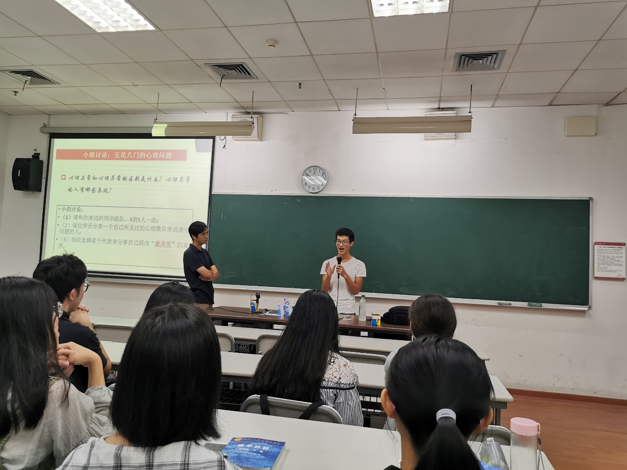 第一个讲座于文科楼h3-201的多媒体教室进行,主讲老师为我校应用心理学研究与咨询中心的老师刘玎。参与讲座的同学约50人。 本次讲座的主题是“常见心理问题的识别与调整”。讲座开始,刘玎老师让大家分小组讨论生活中遇到到有心理问题的人,同学们积极参与讨论,并轮流上台分享讨论成果。