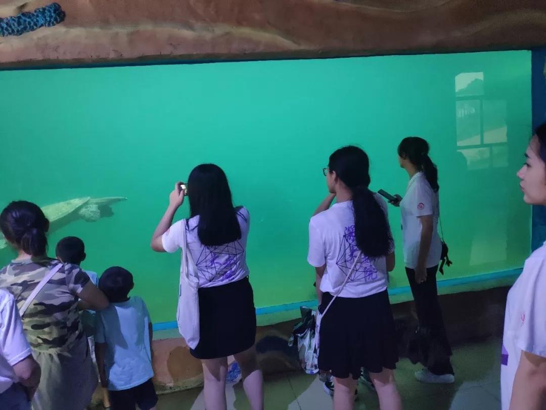 26号的实践并不顺利,受到周边台风影响,当地下起了阵雨,经过队员们的短暂讨论,为了不影响调研的顺利进行,队员们决定冒雨前往海龟自然保护区进行实践。广东惠东海龟国家级自然保护区有繁育基地,产卵基地等多个片区,还有一部分室内场馆。由于下雨天气压较低,有不少海龟时不时浮上水面,给队员们的参观提供了很多便利,队员们一边参观一边学习相关知识,同时也被保护区内无污染的水质和优美的环境所深深的震撼。