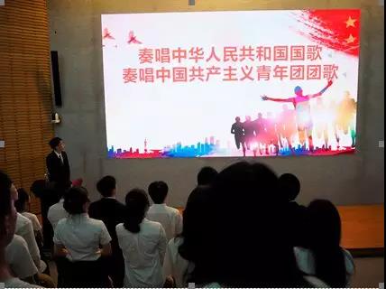 会议伊始,全体起立奏唱中华人民共和国国歌及中国共产主义青年团团歌。