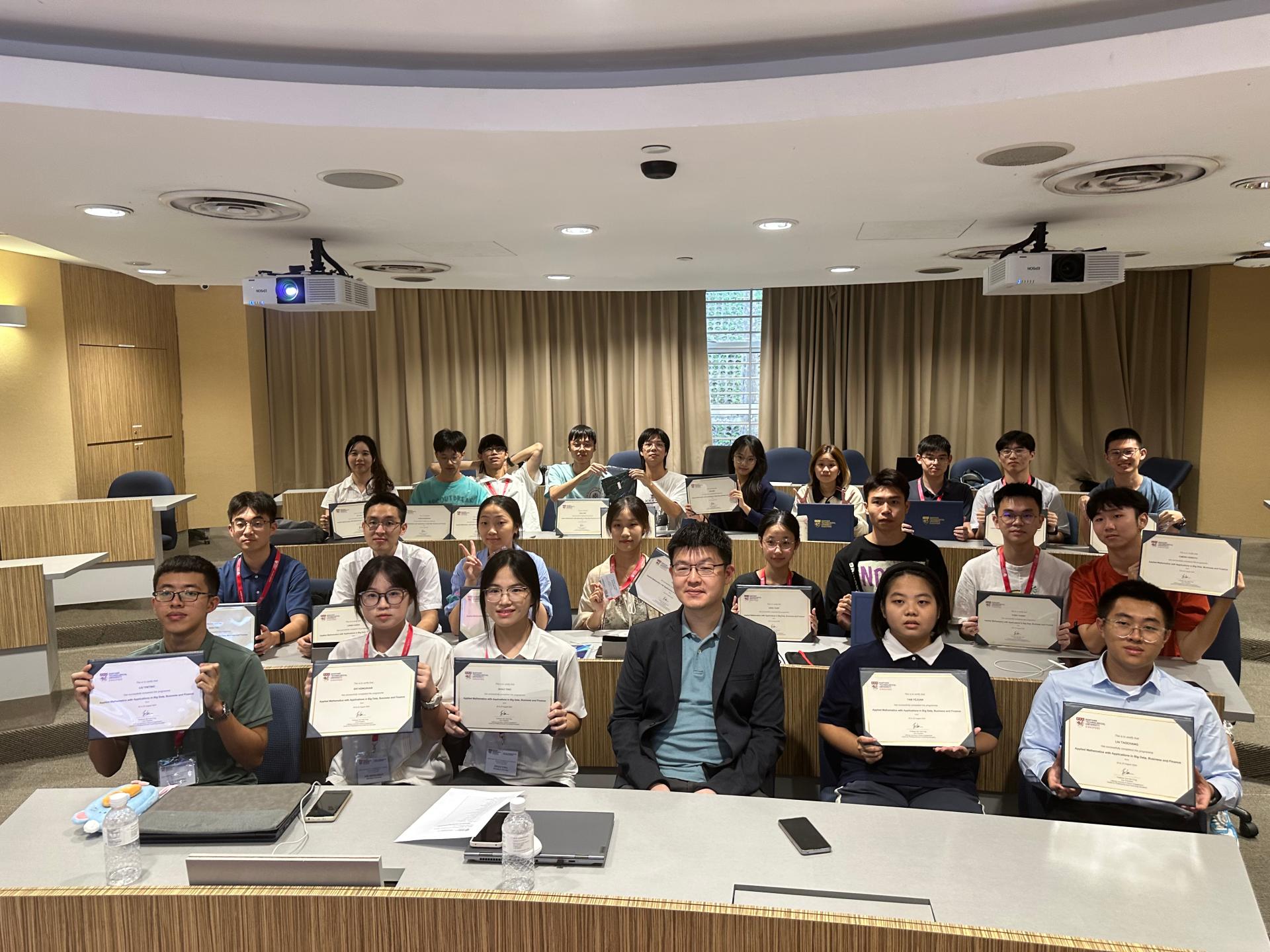 为促进国际化人才培养,拓宽我院优秀本科生在数学学科领域的国际化视野,我院23位优秀本科生于2024年8月18-24日前往新加坡南洋理工大学参加了为期7天的访学项目。该访学团由学院党委叶星副书记、辅导员田力帆老师带队。