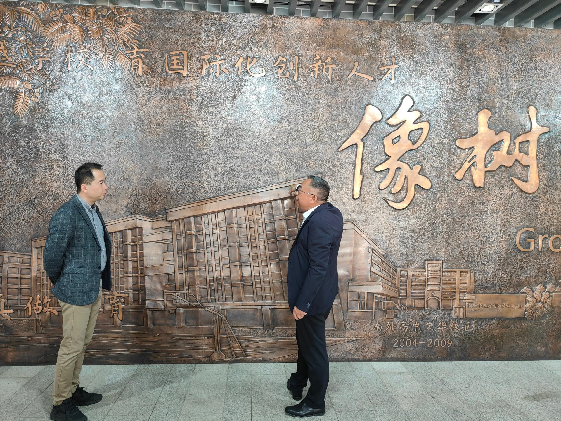 座谈结束后,梁明书记带领深大数院一行参观了南外中学的教学设施、实践场所及校园环境。双方进一步就“英才计划”暑期营、院士科普讲堂、数学益智玩具展、冠名创新班等特色项目达成共识,提出通过导师制、联合课题研究、学术论坛等形式,打造高等教育与基础教育贯通的育人生态。梁明书记在总结中高度认可深大数学学科实力,表示将全力支持实习基地建设,并推动联合实验室、学术论坛等项目的落地实施。