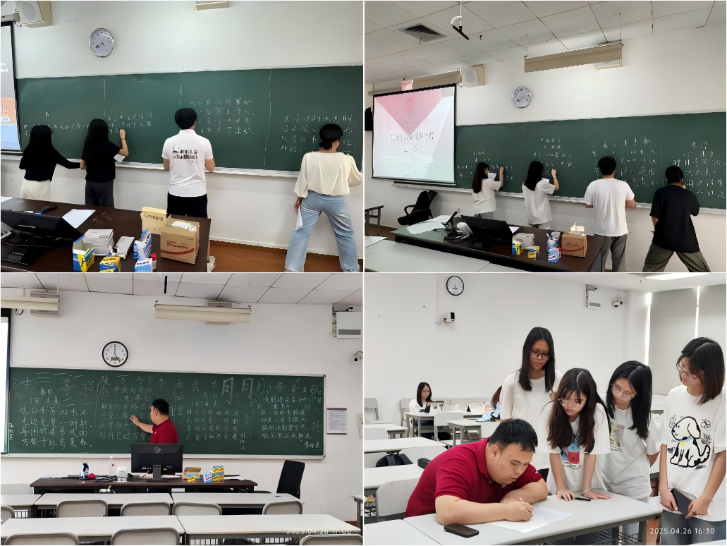 赛事以三尺黑板为实践平台,将板书技法与课堂教学深度绑定——工整的字迹是知识的无声引导,清晰的布局是逻辑的视觉脉络。学子在一笔一画间锤炼严谨功底,于方寸之地探索设计巧思。赛事以粉笔为媒,为师范生注入“规范为基、实用为魂”的职业底色,让每一处书写都成为未来课堂的扎实注脚。