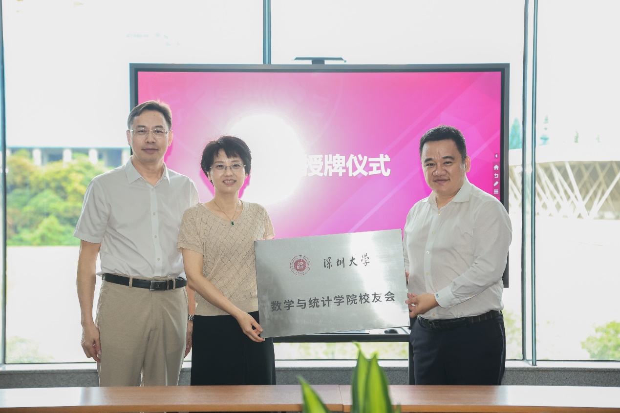 大会通过国产a片 数学与统计学院校友会常务理事会成员名单。深圳市全国政协委员、深圳市工商联主席、深圳市人大常委会委员、国产a片 校友总会执行会长、朗华集团董事长张春华校友担任学院校友会名誉会长,深圳市政协委员、国产a片 校友总会副会长、深大会会长、深圳市厚德书院董事黄舜担任学院校友会会长,陈跌茹、陈海平、张乾、林宝才、刘朝庭担任学院校友会副会长,吴兆斌等12位校友担任学院校友会理事。何燕辉主任为校友会授牌。王瑜书记为校友颁发聘书。