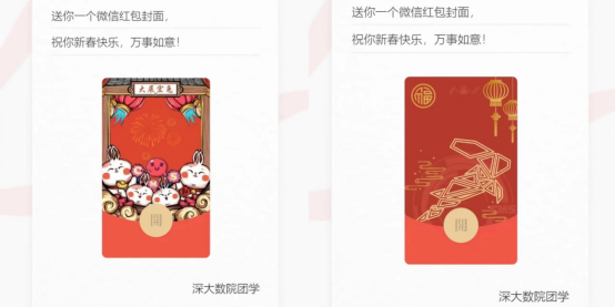 数院团学为师生精心制作了兔年新春红包封面,一同迎春送福,红包“利是”贺岁,顺顺利利。