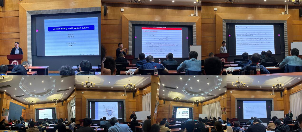 会议期间,来自清华大学、北京大学、南京大学、复旦大学、上海交通大学、湖南大学、浙江大学、华中师范大学等知名高校的优秀学者齐聚一堂,共同探讨并分享了各自研究方向的成果,带来了丰富多彩的学术内容,涵盖了有理函数、超越函数、双曲分支的边界、维数理论等多个复动力系统的研究分支。