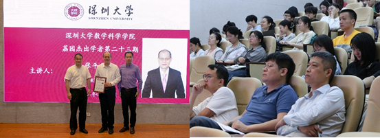 第二十三期杰出教授讲座在粤海校区汇星楼3号报告厅开讲,中国科学院院士、中国科学院数学与系统科学研究院院长张平教授应邀作为此次讲座主讲⼈,给深大师生带来了⼀场以“Global stability of large Fourier mode for 3-D anisotropic Navier-Stokes equations in cylindrical domain”为题的精彩讲座,周辉副校长主持本次讲座。