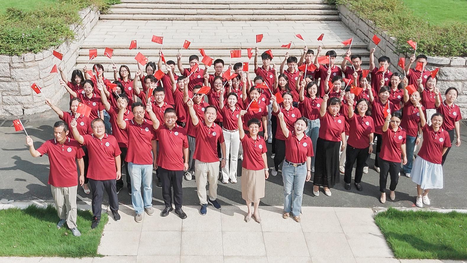 粤海校区天人广场举办,师生们身着红色T恤,精神饱满,伴随《我和我的祖国》的悠扬旋律,唱出了对祖国繁荣昌盛的期盼与自豪。歌声中,不仅生动展现了国产a片