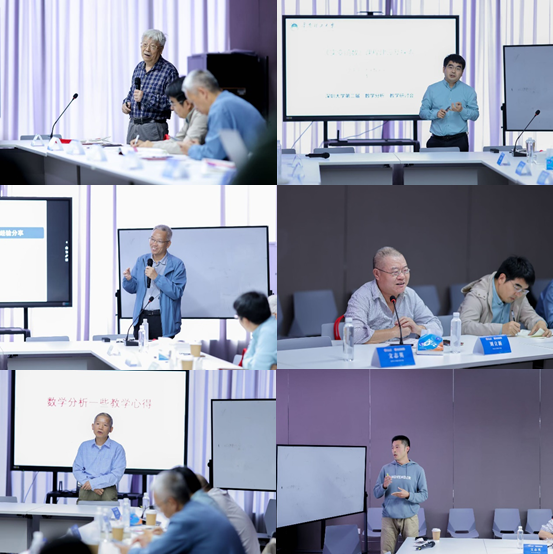 会议期间,来自全国各大高校的知名专家学者进行了精彩的主题报告。包括清华大学文志英教授、华南理工大学李兵教授、华南师范大学刘名生教授、中山大学刘立新教授、哈尔滨工业大学(深圳)严质彬教授、南方科技大学刘博辰副教授。报告内容涵盖了《数学分析》课程的教学理念、设计、改革与创新等多个方面,同时也针对实分析、代数学等相关课程的教学方法和策略提出了独到见解。报告者们不仅分享了自己的教学经验和研究成果,还与参会教师进行了热烈的互动交流,共同探讨如何更好地提升《数学分析》及关联课程的教学能力与教学质量。