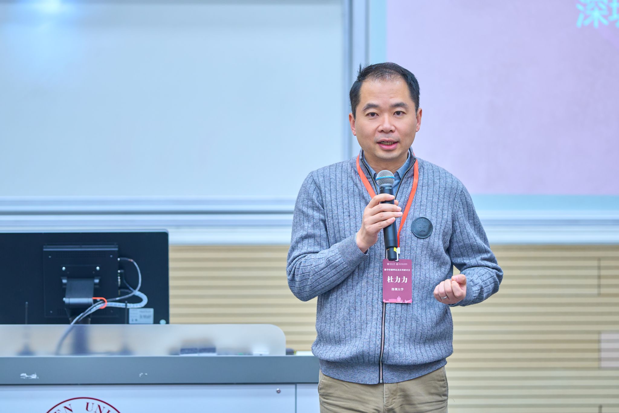 粤海校区顺利举行。本次会议以学术研讨会的形式,交流学者在数学控制理论及应用领域取得的科研成果、研讨前沿课题,旨在为该领域学者提供学术交流的平台,促进学术合作。本次会议邀请了中国科学院院士、山东大学彭实戈教授,贵州大学前校长、浙江大学陈叔平教授,以及国家领军人才计划入选者复旦大学汤善健教授、中国科学院数学与系统科学研究院郭宝珠研究员、山东科技大学张焕水教授、孙振东教授,四川大学张旭教授、吕琦教授,山东大学李娟教授、聂天洋教授等数学控制论领域的20余位优秀学者参会。