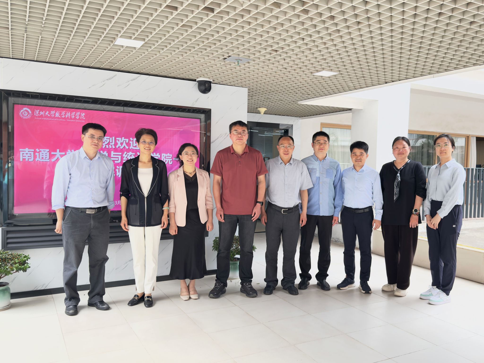 王瑜书记对南通大学数学与统计学院一行的到来表示热烈欢迎,分享了学院在党建工作方面的特色做法,重点介绍了2023年以来学院党委先后获评党建“双创”标杆院系和党建工作样板支部的经验,并就推动党建工作与业务工作深度融合的具体举措作了说明。详细介绍了学院的发展历程与现状,从学科排名、师资队伍、教师团队、科研发展、人才培养等方面系统展示了学院的建设成果。