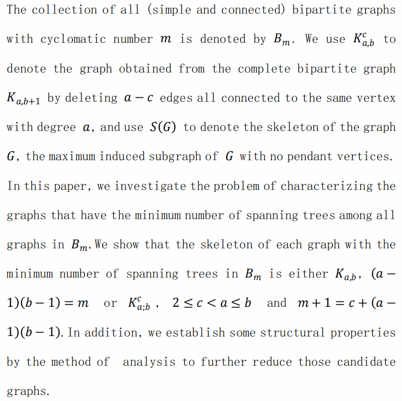 报告题目:On bipartite graphs with the minimum number of spanning trees