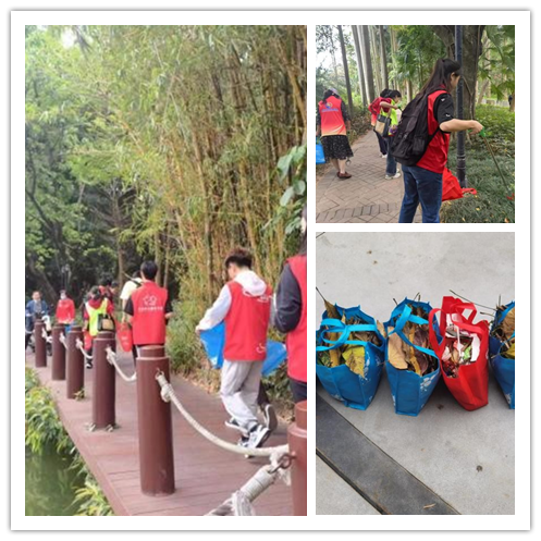 活动第二个环节为垃圾捡拾。数学与统计学院志愿者与文昌街社区居民志愿者们随机分为三组,分三条路线巡湖捡拾垃圾,包括收集枯枝落叶和其他垃圾,为社区绿化贡献力量。