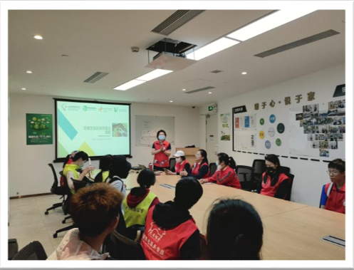 活动第一个环节为关于可持续生活、可持续园艺与堆肥的专题讲座学习,由文昌街社区党群服务中心社工蔡丽娜女士主讲分享。通过专题学习,同学们了解到,堆肥是一种对自然的模仿,它创造条件以加速可降解的物质(有机物)的降解,可以把可降解的有机物质变为黑金土,让其回归土地滋养万物。