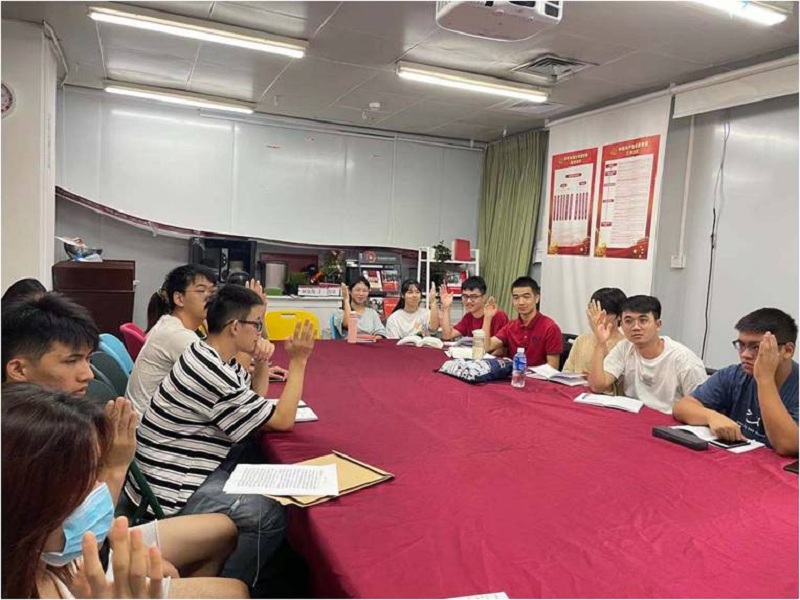 我院本科生第二党支部于9月13日下午在汇星楼5楼召开2021年9月支委会议,支部书记肖晓君老师,支部委员谢志鹏、董怡君、邹璇、黎天乐参会。会议第一议程学习,组织学习《论党的宣传思想工作》,深入学习贯彻市第七次党代会精神。随后,经支委决定,讨论了新一期党员发展情况,下半年工作重点整顿入党不规范流程,确保发展党员的工作顺利完成。