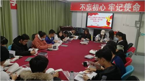 会上公布上个月党支部内成员学习强国积分情况,并且收缴1月份党费,同时对支部的请假制度进一步说明。会议最后做出关于有党员同学提出集体学习建议的回应,表示:保留领读《习近平谈治国理政》第三卷的组织学习形式,鼓励党员同学分享其他渠道的学习信息。