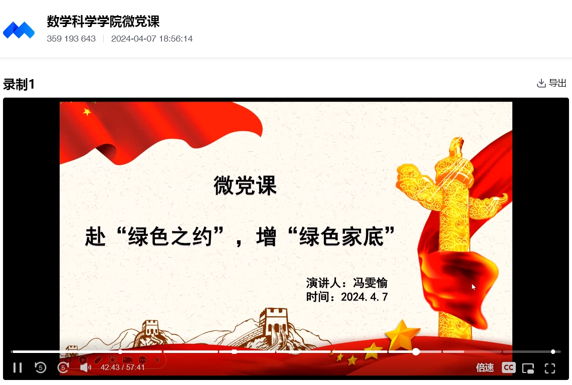 党员冯雯愉以“赴‘绿色之约’,增‘绿色家底’为主题,分享了从党的十八大召开以来美丽中国建设扎实推进,生态环境保护工作取得积极进展,生态环境质量稳定改善的过程,充分阐释了“增绿就是增优势”,“植树就是植未来”。最后,冯雯愉联系实际指出,近期深大数院党委、团委积极响应“百千万工程”、“双百行动”、“绿美广东”的号召,赴汕尾市海丰县海城镇温厝村开展了“绿美广东,青年先行”的党建带团建主题植树活动,以实际行动为生态文明建设和乡村振兴贡献力量,极大提高了同学们保护生态环境、建设美丽中国的使命感和责任感。