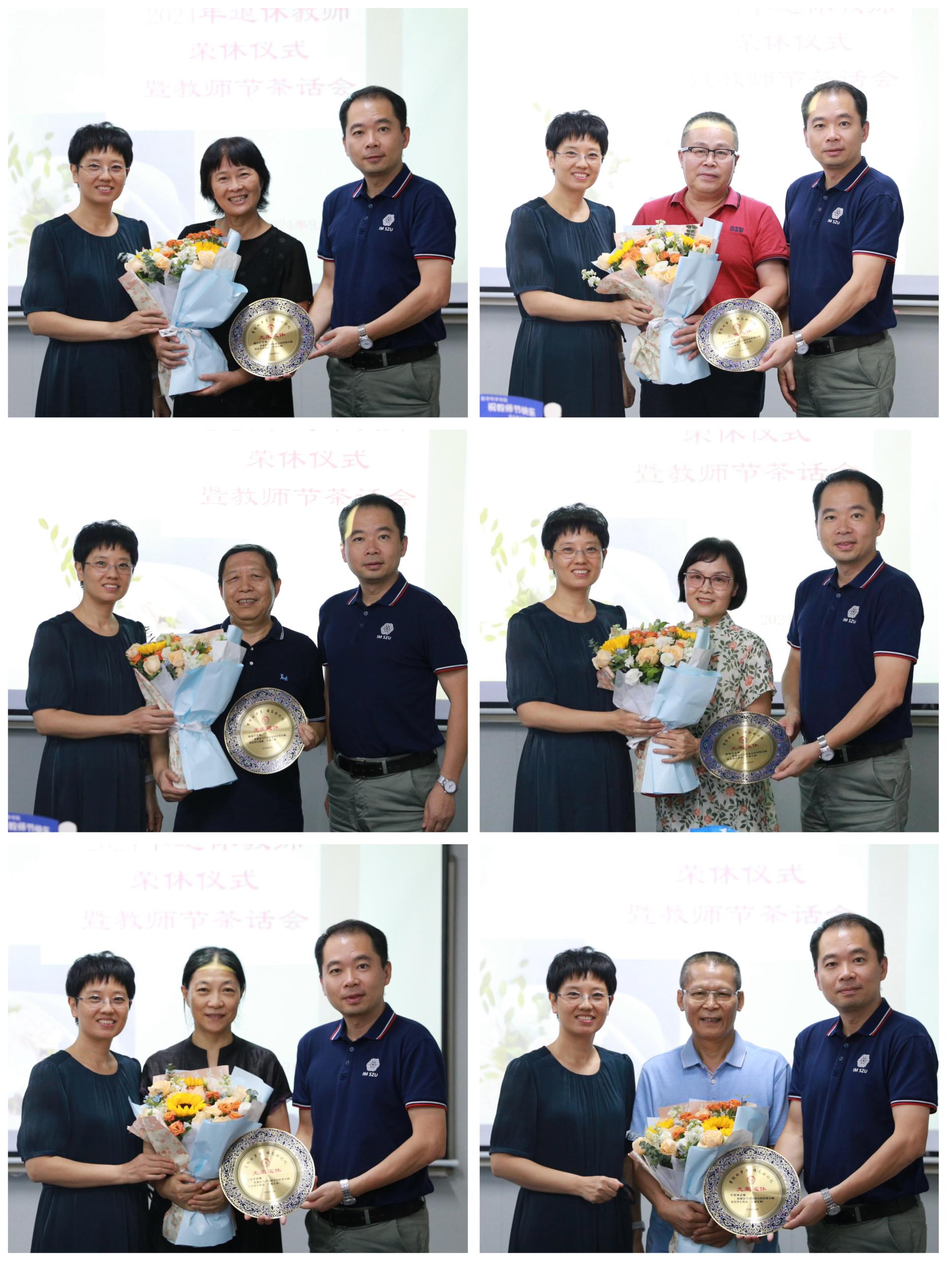 随后,书记与院长为退休教师颁发了纪念牌,并送上了鲜花,以此深情表达学院对他们的感激与美好祝福。