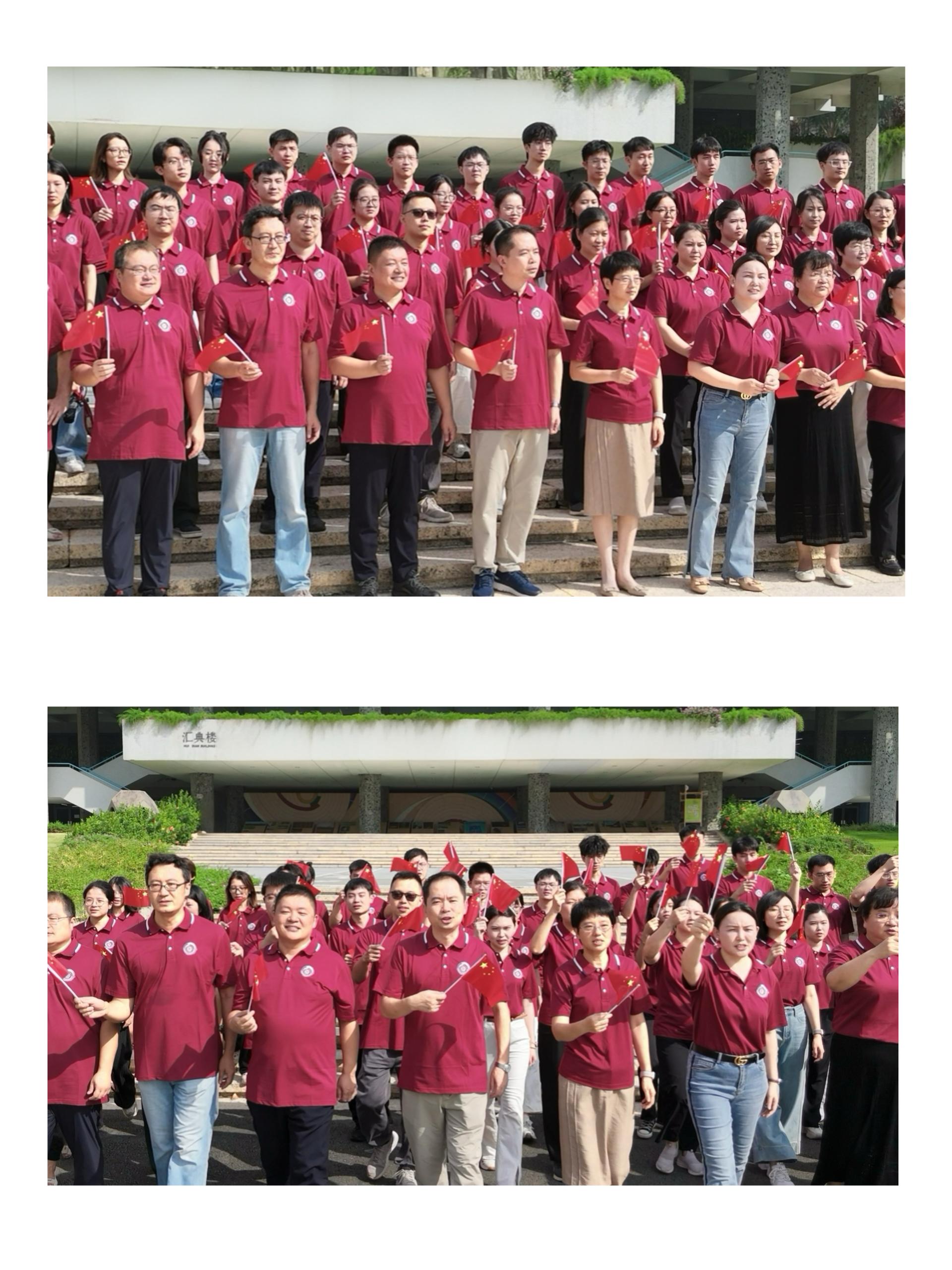 粤海校区天人广场举办,师生们身着红色T恤,精神饱满,伴随《我和我的祖国》的悠扬旋律,唱出了对祖国繁荣昌盛的期盼与自豪。歌声中,不仅生动展现了国产a片