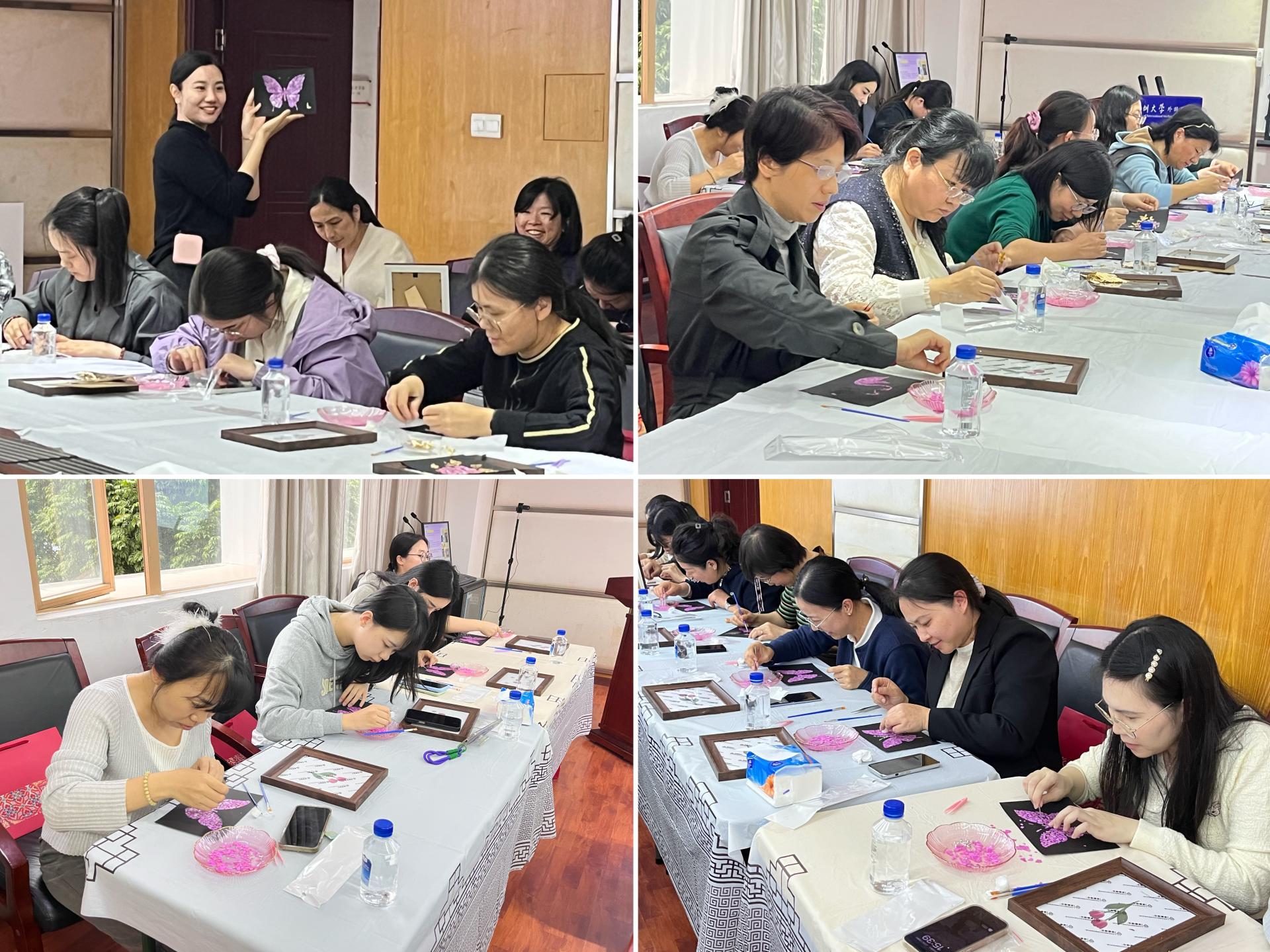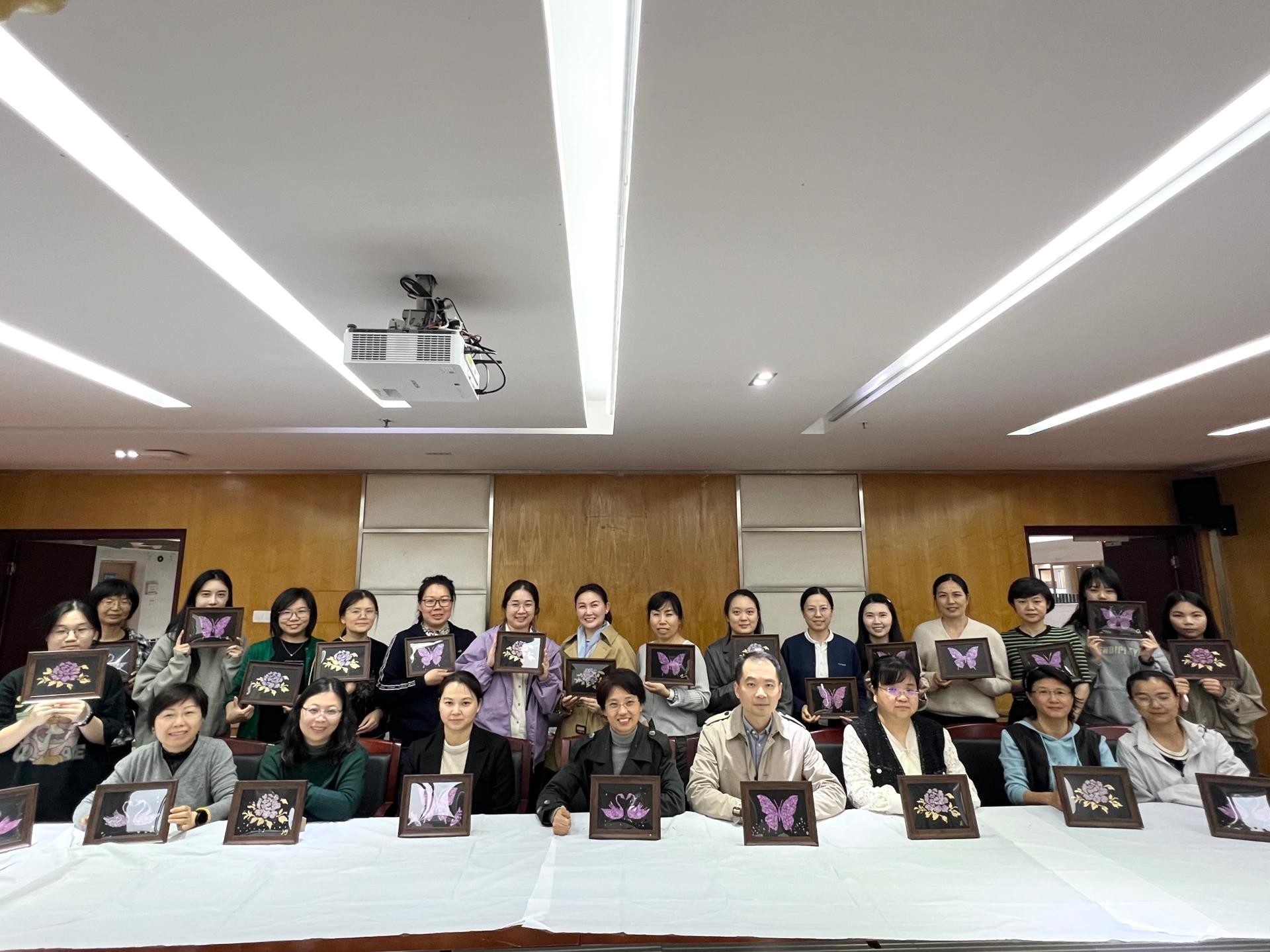 工会在汇文楼1300会议室举办“暖心坊·美你生活”系列活动之螺钿画手作体验活动。学院党委书记王瑜与三十余名女教职工齐聚一堂,在传统技艺中感受文化魅力,共度温馨节日时光。