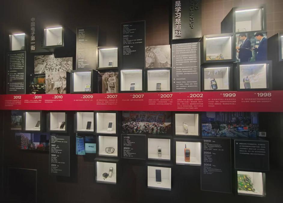 在“发展梦”展区,通过年代照片、历史文件及生产线模型,大家直观感受了华强北人“敢闯敢试、敢为人先”的拓荒精神。在“创业梦”篇章中,复原的“一米柜台”场景引发大家驻足讨论:“从一米柜台到全球电子市场,华强北的创业故事激励我们要永葆奋斗初心”。“创新梦”展区展示的国产手机迭代史(从京华第一台收录音机到小米1代智能机)也令党员同学们感叹,科技创新没有终点,我们要争做时代弄潮儿。